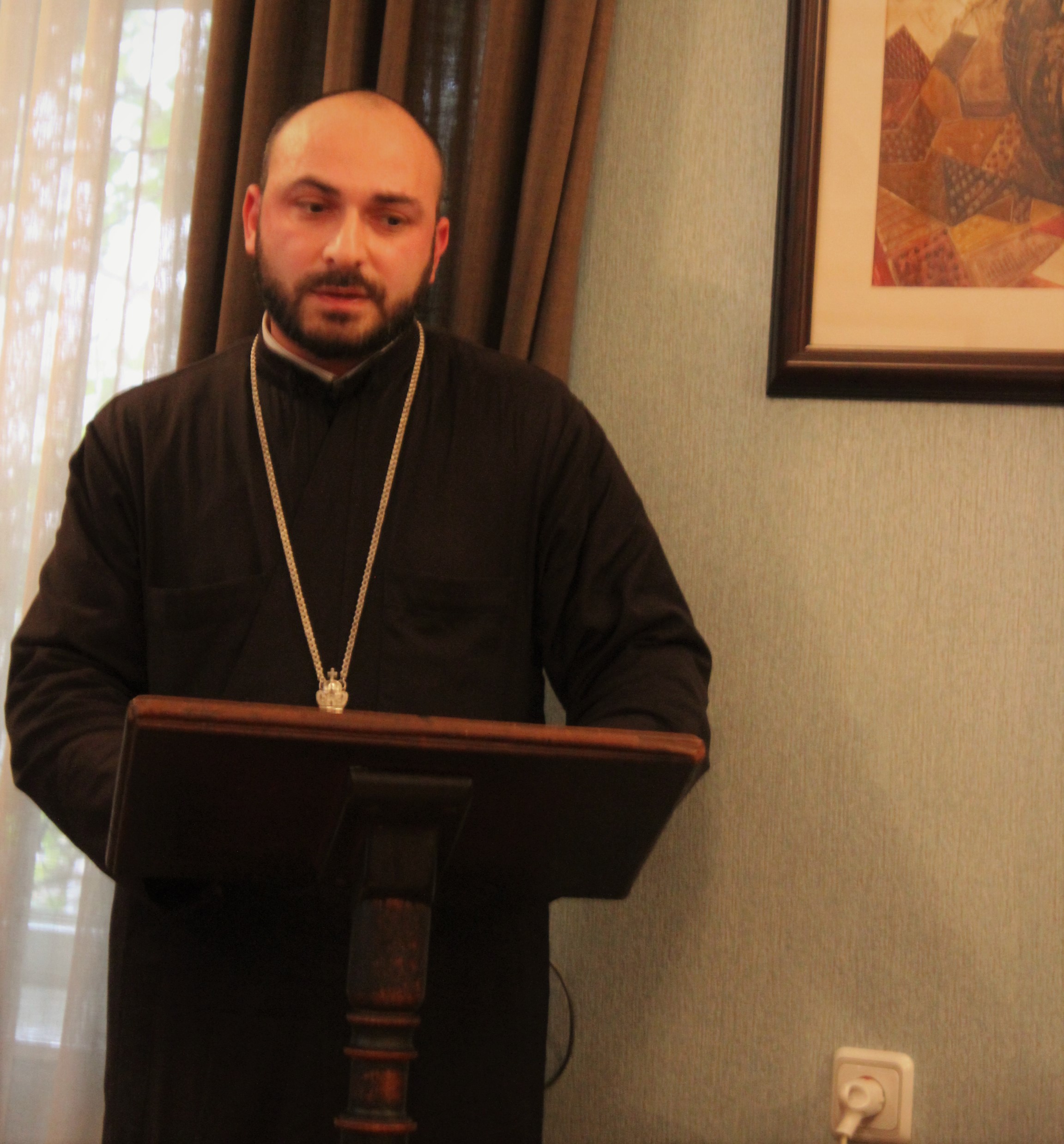 მაგისტრანტმა წარმოადგინა ნაშრომის ანოტაცია და ძირითადი დასკვნები. თემის ხელმძღვანელმა პროფესორმა სერგო ვარდოსანიძემ ისაუბრა ნაშრომში განხილული საკითხების აქტუალურობაზე. მან აღნიშნა, რომ მაგისტრანტმა კეთილსინდისიერად იმუშავა, გაეცნო შესაბამის სამეცნიერო ლიტერტურას და საკუთარი დაკვირვებები წარმოადგინა ნაშრომში. რეცენზენტმა,ისტორიის დოქტორმა გიორგი მაისურაძემ, მაგისტრანტის ნაშრომთან დაკავშირებით გამოთქვა შენიშვნები და თემას დადებითი შეფასება მისცა. სამეცნიერო საბჭოს წევრებმა მაგისტრანტს დაუსვეს რამდენიმე შეკითხვა, რაზეც მამა გიორგიმ ამომწურავად უპასუხა.