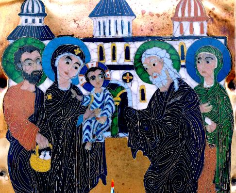 როგორც ცნობილია, ტაძარში მიყვანილ ახლადშობილ იესოს 40-ე დღეს მიეგება ძველი აღთქმის ერთ-ერთი რჩეული მსახური, – წმინდა სვიმეონ წინასწარმეტყველი. ღრმად მოხუცებულ მართალ სვიმეონს ნაუწყები ჰქონდა სულიწმიდისაგან, რომ არ აღესრულებოდა, ვიდრე მესიას არ იხილავდა; და, აი, მათი შეხვედრით დასრულდა უფლის მოვლინების მრავალათასწლიანი მოლოდინი.