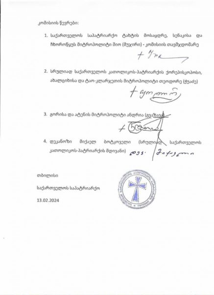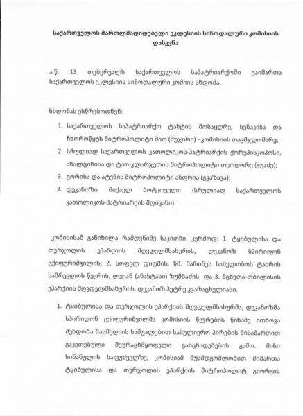 საქართველოს მართლმადიდებელი ეკლესიის სინოდალური კომისიის დასკვნა