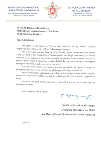 ჩვენ არასდროს დაგვავიწყდება თქვენი თანადგომა წლების მანძილზე საქართველოს ეკლესიის მიმართ გამოჩენილი და ვიმედოვნებთ, მომავალშიც, ღვთის შეწევნით, ჩვენს შორის მეგობრული და ძმური ურთიერთობები განმტკიცდება.
