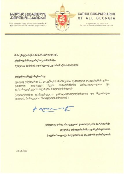 სრულიად საქართველოს კათოლიკოს-პატრიარქის სამძიმარი ჩეხეთის ეკლესიის მეთაურს