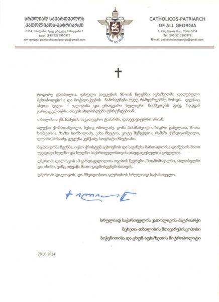 ღმერთმა დალოცოს და მშვიდობით აკურთხოს სრულიად საქართველო.