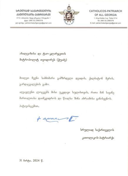 სრულიად საქართველოს კათოლიკოს-პატრიარქის სამძიმრის წერილები