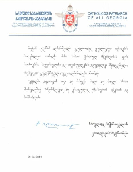 სრულიად საქართველოს კათოლიკოს-პატრიარქის მილოცვა ბ-ნ გურამ დოჩანაშვილს