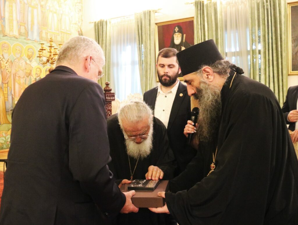 კათოლიკოს-პატრიარქმა შეხვედრის დასასრულს სტუმრებს ვიზიტისთვის მადლობა გადაუხადა, სამახსოვრო საჩუქრები გადასცა და წარმატებული მოღვაწეობა უსურვა.