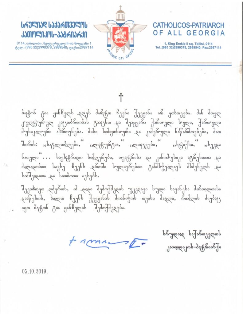 სრულიად საქართველოს კათოლიკოს-პატრიარქის სამძიმარი გია ყანჩელის გარდაცვალებასთან დაკავშირებით