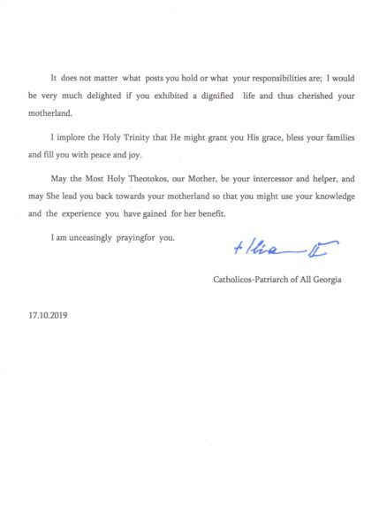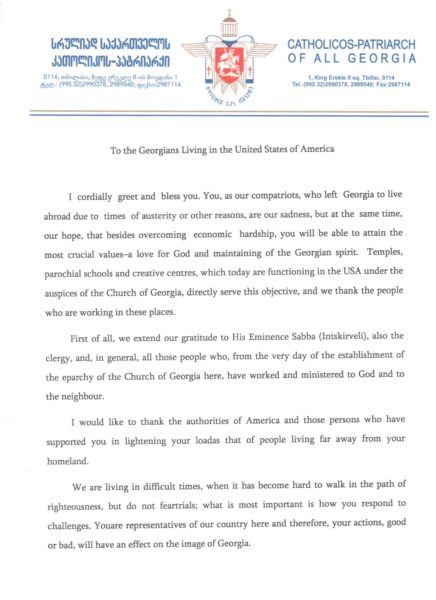 სრულიად საქართველოს კათოლიკოს-პატრიარქის მიმართვა აშშ-ში მცხოვრებ ქართველებს