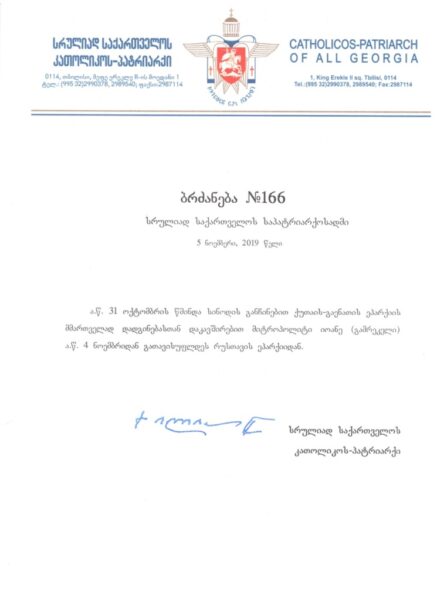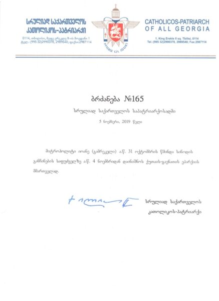 სრულიად საქართველოს კათოლიკოს-პატრიარქის ბრძანება