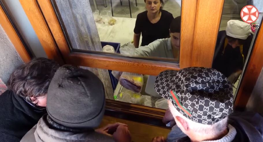 სტუმრად წმინდა მიქაელ მთავარანგელოზის სახელობის ტაძართან არსებულ უფასო სასადილო “თხილის გულში”, სადაც ბენეფიციარებს ყოველდღიურად უმასპინძლდებიან