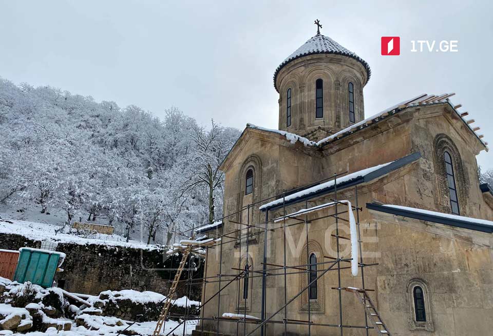 „ტაძარში წყლის ჩადინება არ დაფიქსირებულა. ეს იყო პრევენციის მიზნით გათვალისწინებული დროებითი გადახურვა. რაც შეეხება ტენიანობასთან დაკავშირებულ პრობლემებს, ტენიანობის სხვა მიზეზები არსებობს, რაზეც დამატებით კვლევები ჩატარდება. ატმოსფერული ნალექების ჩადენა არ ხდება. დარჩენილია 3-4 დღის სამუშაო და ამინდის გამოსვლისთანავე დასრულდება. რაც შეეხება ღვთისმშობლის სახელობის მთავარ ტაძარს, ამჟამად მიმდინარეობს ინტერიერში განსათავსებელი ხარაჩოების მოწყობის სამუშაოები ფრესკების შემდგომი დათვალიერების მიზნით. მთავარი ტაძრის დროებითი გადახურვის ძირითადი ნაწილი დასრულებულია“, – განაცხადა ზაზა ჩხიკვაძემ.