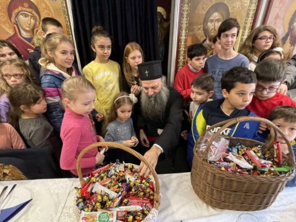 უწმიდესმა სრულიად სერბეთის პატრიარქმა პორფირემ ბელგრადის ერთ-ერთი საკათედრო ტაძრის სატრაპეზოში უმასპინძლა მზრუნველობამოკლებულ ბავშვებს.