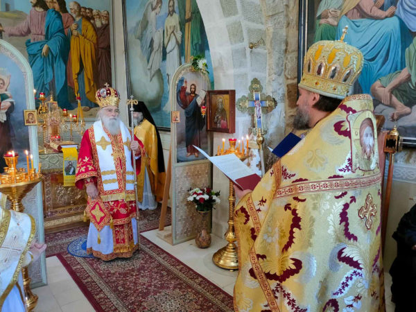 იერუსალიმის წმინდა ქალაქისა და სრულიად პალესტინის პატრიარქის, უნეტარესი თეოფილე III-ის ლოცვა-კურთხევით, რუსეთის სულიერი მისიისთვის მნიშვნელოვან დღეს სადღესასწაულო ღვთისმსახურებას წარუძღვა ვოსტრიის მიტროპოლიტი ტიმოთე (იერუსალიმის საპატრიარქო).