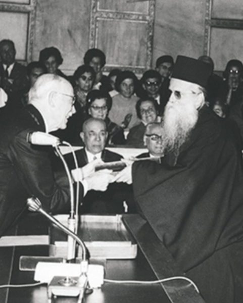 في عام 1963 منحه قداسة البطريرك المسكوني اثيناغوراس الاول صليب الألفية لجبل أثوس ، لمساهمته في تنظيم وإنجاح الاحتفالات المخطط لها.