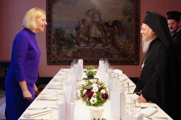 حضر صاحب القداسة البطريرك المسكوني برثلماوس الاول مأدبة عشاء رسمية أقامتها على شرفه سعادة عضو البرلمان السيدة آنيلي أكرمان، في قاعة البرلمان