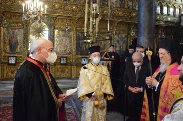 بعد ذلك مباشرة ، رسم قداسته. السيد ديميتريوس كريسوشو ، أستاذ قسم العلوم السياسية والإدارة العامة في جامعة كابوديستريان الوطنية في أثينا ، ارخن العرش المسكوني.