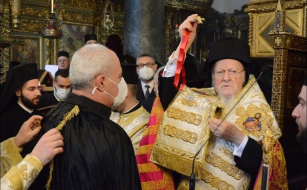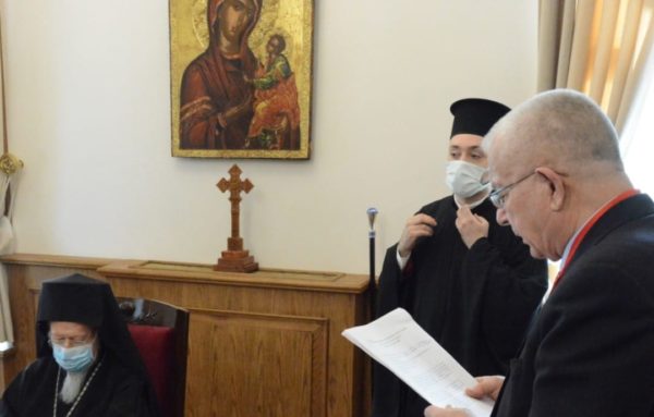 صاحب السعادة ، اليوم نحن نمنحك بسبب المستوى الممتاز والكبير ​​اليوم لتعاونك في خدمة الإنسان والعالم ، مدافعًا عن حقوق العرش المسكوني ، ورابطًا للمؤسسات التي تعمل من باب إلى باب. نحن على يقين من أنك تستحق . الكنيسة بحاجة إلى الناس مثلك ، يحمل بأمانة ووفاء للتقاليد البطريركية وبروح حديثة ، مع هيبة وحيوية “.