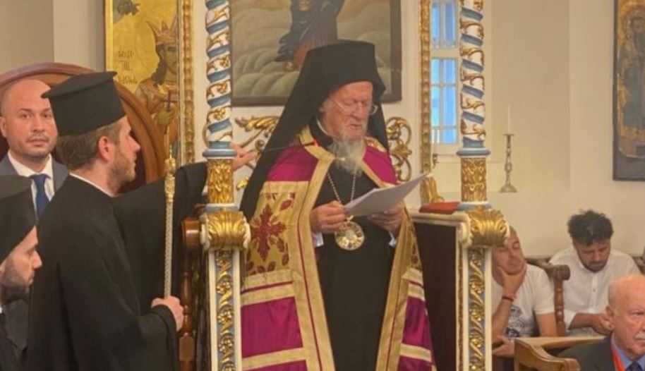بهذه التمنيات الحارة والأفكار المفعمة بالأمل، نحييكم جميعًا بطريقة أبوية ونرحب بكم بشكل خاص بمشاعر الحب الكبير، ذلك الحب العميق الذي يمتلئ به دائمًا قلب كنيسة القسطنطينية الأم لجميع أبنائها، نرحب بصاحب السيادة متروبوليت أخائية، المطران أثناسيوس ، القادم من اليونان، الذي جاء أيضًا وهو حاج إلى مسقط رأس أسلافه الذين ولدوا وعاشوا في باتيرياكاس التابعة لمطرانية ديركا المقدسة، والتي تحتفل اليوم أيضًا، مع رعية ألقديسة باراسكيا، حيث ترأس متروبوليت أخائيا أمس بدعوة كريمة من صاحب السيادة متروبوليت ديركون المطران ابوستولو