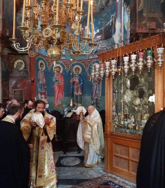 01/06/2022 01/06/2022 في دير إيفيرون جبل أثوس ، عمل البطريرك المسكوني برثلماوس كاهن بسيط في الكنيسة المقدسة ، حيث تُعتز بأيقونة العذراء قدم البطريرك المسكوني انغليبيون للايقونة العجائبية أيقونة بورتيتيسا المقدسة ، كعربون شكر للسيدة العذراء على بطريركيته التي استمرت ثلاثين عامًا ، بينما وأضاءه شمعة لوقف الحرب المميتة في أوكرانيا.