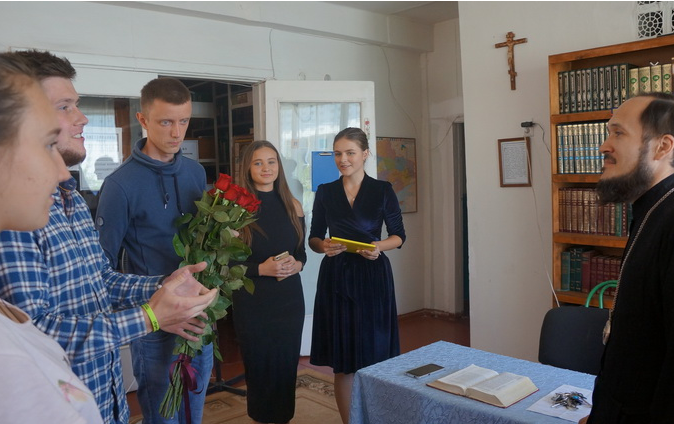 В кінці лекції юнаки та дівчата всім курсом подякували Його Преосвященству, та в його особі усім, хто приклав зусилля для його проведення, за чудовий освітній молодіжний проект, сімейну атмосферу, гармонійне поєднання лекційного часу і часу відпочинку, і піднесли в дар букет квітів, а на згадку про себе – альбом зі спільним фото та відгуками.