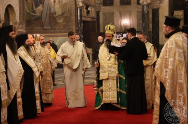 Заедно със Светейшия патриарх съслужиха Мелнишкият епископ Герасим – главен секретар на Св. Синод, архим. Йоан – протосингел на Софийска митрополия, храмовото духовенство и столични свещеници, представителите на Руската и Румънската православни църкви у нас – прот. Владимир Тишчук и ставр. ик. Нелуц Опря и протодяконите Иван Петков и Деян Коруноски.