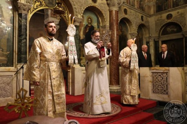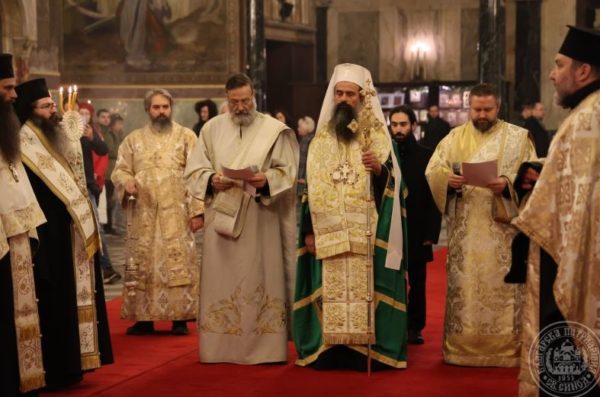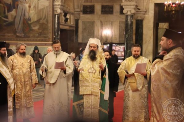 Заедно със Светейшия патриарх съслужиха Мелнишкият епископ Герасим – главен секретар на Св. Синод, архим. Йоан – протосингел на Софийска митрополия, храмовото духовенство и столични свещеници, представителите на Руската и Румънската православни църкви у нас – прот. Владимир Тишчук и ставр. ик. Нелуц Опря и протодяконите Иван Петков и Деян Коруноски.