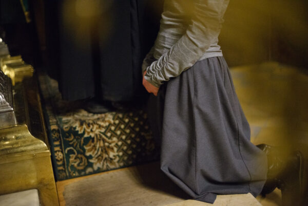 После молебна каждый студент подходил к мощам преподобного Сергия и вставал на колени. Архимандрит Лука накрывал его голову епитрахилью и читал молитву иконописцев.
