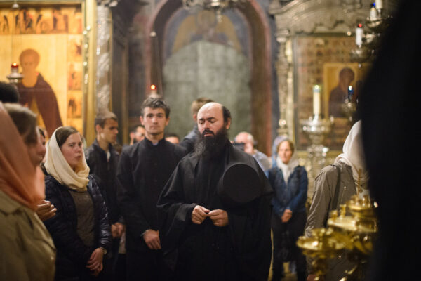 Никогда Лавра не бывает так прекрасна, как вечером. Шумные туристические группы уезжают на автобусах, закрываются сувенирные магазины, прожекторы освещают последних паломников, выходящих через узкую щель полузакрытых монастырских ворот. В Лавре остаются только монахи и студенты, которым посчастливилось учиться в Московской духовной академии. И в это волшебное время 28 июня состоялось посвящение в иконописцы студентов Иконописного отделения.