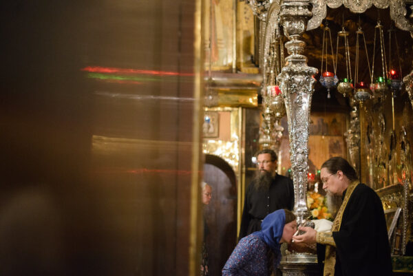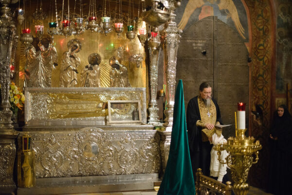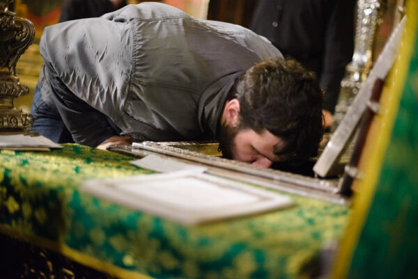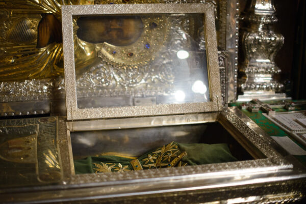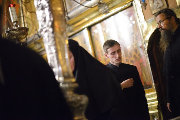 После молебна каждый студент подходил к мощам преподобного Сергия и вставал на колени. Архимандрит Лука накрывал его голову епитрахилью и читал молитву иконописцев.