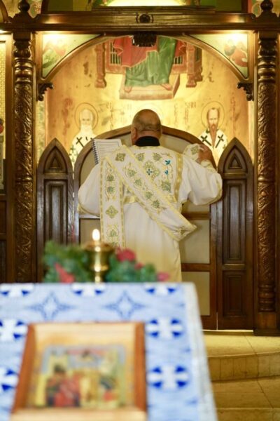 Божанственом литургијом начелствовао је парох Душан Михајловић, а прву проповед изговорио је велики пријатељ наше парохије, старешина цркве Рођења Пресвете Богородице Антиохијског патријархата, јереј Франциско Салвадор, који је такође причестио присутне парохијане.
