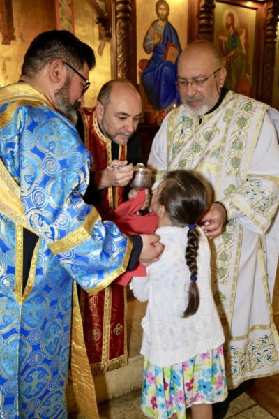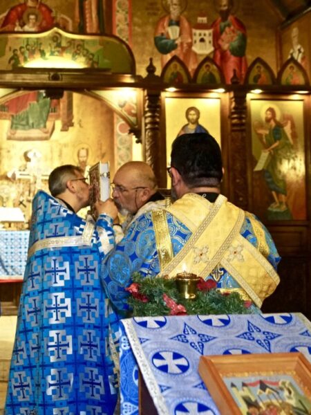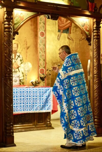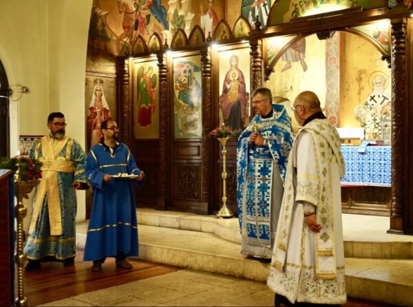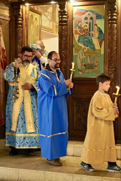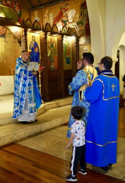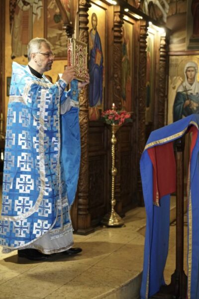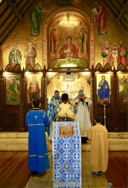 Божанственом литургијом начелствовао је парох Душан Михајловић, а прву проповед изговорио је велики пријатељ наше парохије, старешина цркве Рођења Пресвете Богородице Антиохијског патријархата, јереј Франциско Салвадор, који је такође причестио присутне парохијане.