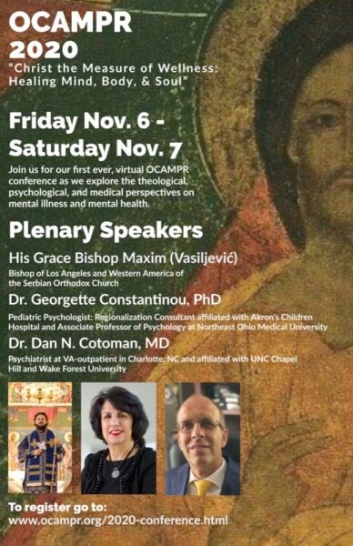 In 2019, OCAMPR was invited to collaborate with the Assembly of Canonical Orthodox Bishops to establish a Mental Health Task Force charged to identify and respond to the mental health needs of the Orthodox faithful. With that in mind, the OCAMPR Board decided to focus our 2020 conference on the topic of mental health from a theological, psychological, and medical perspective. This year, we have watched our world face the effects of COVID-19 with all its social, economic and mental health implications. All of us have been affected personally and professionally from the events of this past year, making it all the more important that we gather in prayer, fellowship, learning, and support.