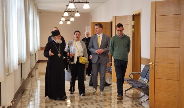 სტუმრები შეხვდნენ უნივერსიტეტის რექტორს, ფოთისა და ხობის მიტროპოლიტ გრიგოლს და კავკასიური ფილოსოფიისა და თეოლოგიის სამეცნიერო-კვლევითი არქივის დირექტორს თენგიზ ირემაძეს.