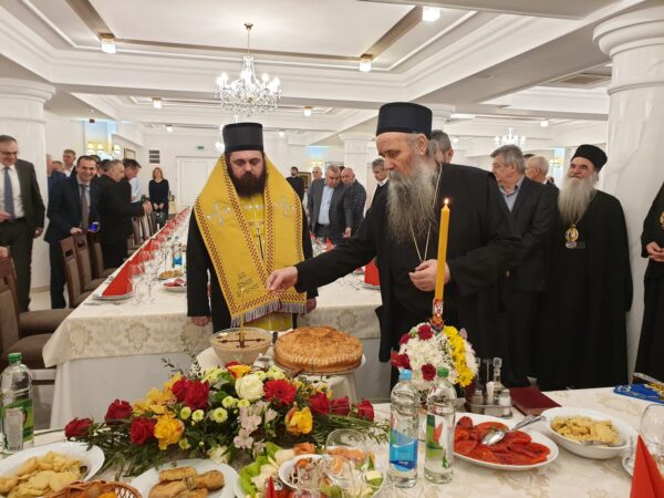 Послије свете Литургије, у сали Светосавско-парохијског дома Петропавловског храма у Бијељини, уприличено је послужење за сав присутан народ који је том приликом Преосвећеном Владици упутио најсрдачије честитке поводом Његове крсне славе.