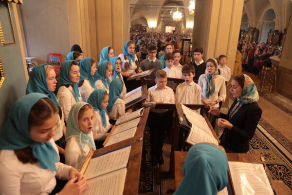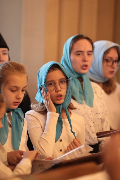 Богослужебные песнопения вместе с хором Новодевичьего монастыря исполнял хор воскресной школы обители, регент – А.В. Швецова.