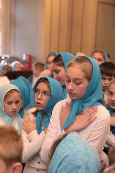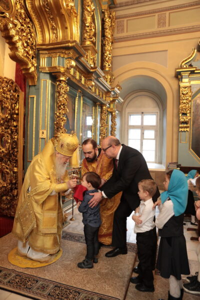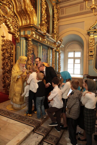 Дорогие братья и сестры! Каждое воскресенье у нас совершается торжественная служба, но сегодняшний день мне напомнил Пасху. Храм был переполнен молящимися, собралось множество детей, пели два хора. На правом клиросе пел хор воспитанников нашей воскресной школы. Сегодня мы отмечаем 30-летие воскресной школы при Новодевичьем монастыре. Вы слышали Евангельские слова Спасителя: «Пустите детей приходить ко Мне и не препятствуйте им, ибо таковых есть Царствие Божие» (Мк. 10:14). Эти слова особенно трогают нашу душу. Спаситель заповедал в первую очередь обращать внимание на детей. Слава Богу, что в наше время мы имеем возможность воспитывать детей в духе православной веры, и сегодня за Божественной литургией мы видим плоды этого воспитания. В трапезных палатах открыта выставка, посвященная нашей воскресной школе. А через час там состоится встреча с учащимися и каждый из вас, кто имеет интерес и желание, приглашаются на выставку и на детский концерт. Я поздравляю всех вас с праздником, причастников и причастниц — с принятием Святых Христовых Таин. На всех вас призываю Божие благословение.