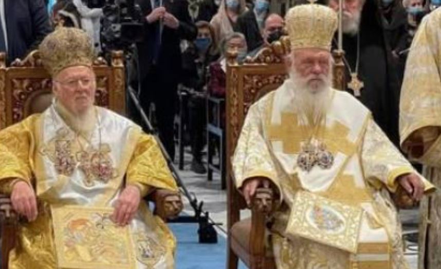 الكلي القداسة رئيس اساقفة القسطنطينية روما الجديدة البطريرك المسكوني برثلماوس الاول مع صاحب الغبطة رئيس اساقفة اثينا وسائر بلاد اليونان ايرونيموس الثاني