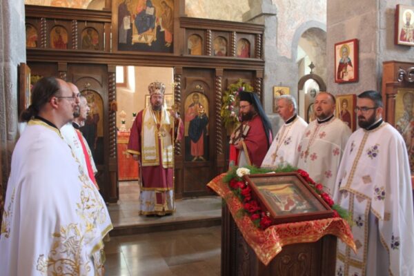 Саслуживало је свештенство и свештеномонаштво епархија Загребачко-љубљанске, Британско-скандинавске и Горњокарловачке. После заамвоне молитве и литије око манастирског храма преломљен је славски колач у славу и част заштитника те свете обитељи која прославља 420 година постојања. О историјату манастира Гомирја читајте овде.