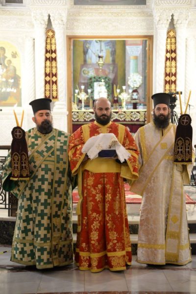 On the day of the feast, the Divine Liturgy was celebrated by His Eminence Metropolitan Chrysostomos of Patras, who ordained the revered Deacon Christoforos Paganias, married, who attends the Ecclesiastical High School of Patras. His Eminence Metropolitan Theodosios of Kinsasa and His Grace Bishop Chrysanthos of Kernitsa concelebrated with His Eminence.