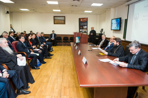 В президиуме мероприятия находились: председатель Отдела внешних церковных связей Московского Патриархата, ректор Общецерковной аспирантуры и докторантуры, представитель Московского Патриархата в Межрелигиозном совете России, президент НОТА митрополит Волоколамский Иларион; ректор Московского государственного университета академик РАН В.А. Садовничий; ректор Национального исследовательского ядерного университета «МИФИ» академик РАО М.Н. Стриханов; декан философского факультета МГУ, член-корреспондент РАН В.В. Миронов.