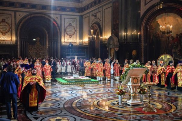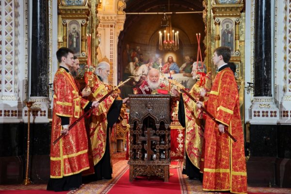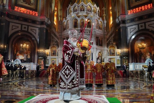 24 апреля 2022 года, в праздник Светлого Христова Воскресения, Святейший Патриарх Московский и всея Руси Кирилл совершил Пасхальную великую вечерню в кафедральном соборном Храме Христа Спасителя в Москве.