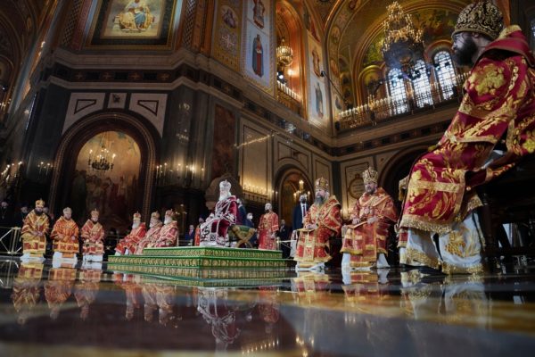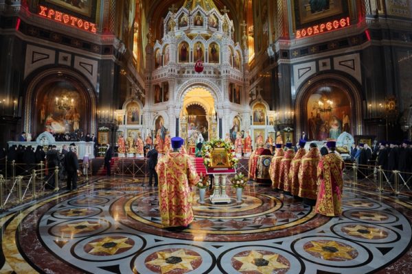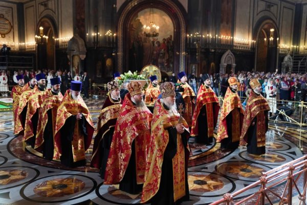 Святейший Патриарх Кирилл совершил Пасхальную великую вечерню в Храме Христа Спасителя