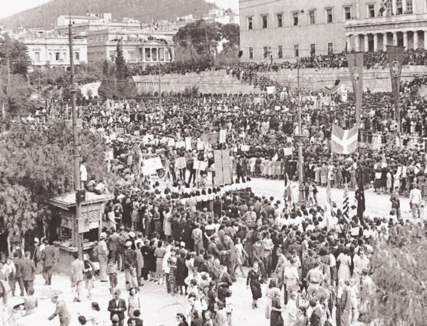 German troops began retreating from the Greek capital on the evening of October 11, 1944, with only a handful of remaining Nazis assembling at the Tomb of the Unknown Soldier, in front of Parliament in central Athens, on the morning of October 12 to lay a wreath — a highly insolent act given the devastation and death toll wrought by three-and-a-half years of occupation.