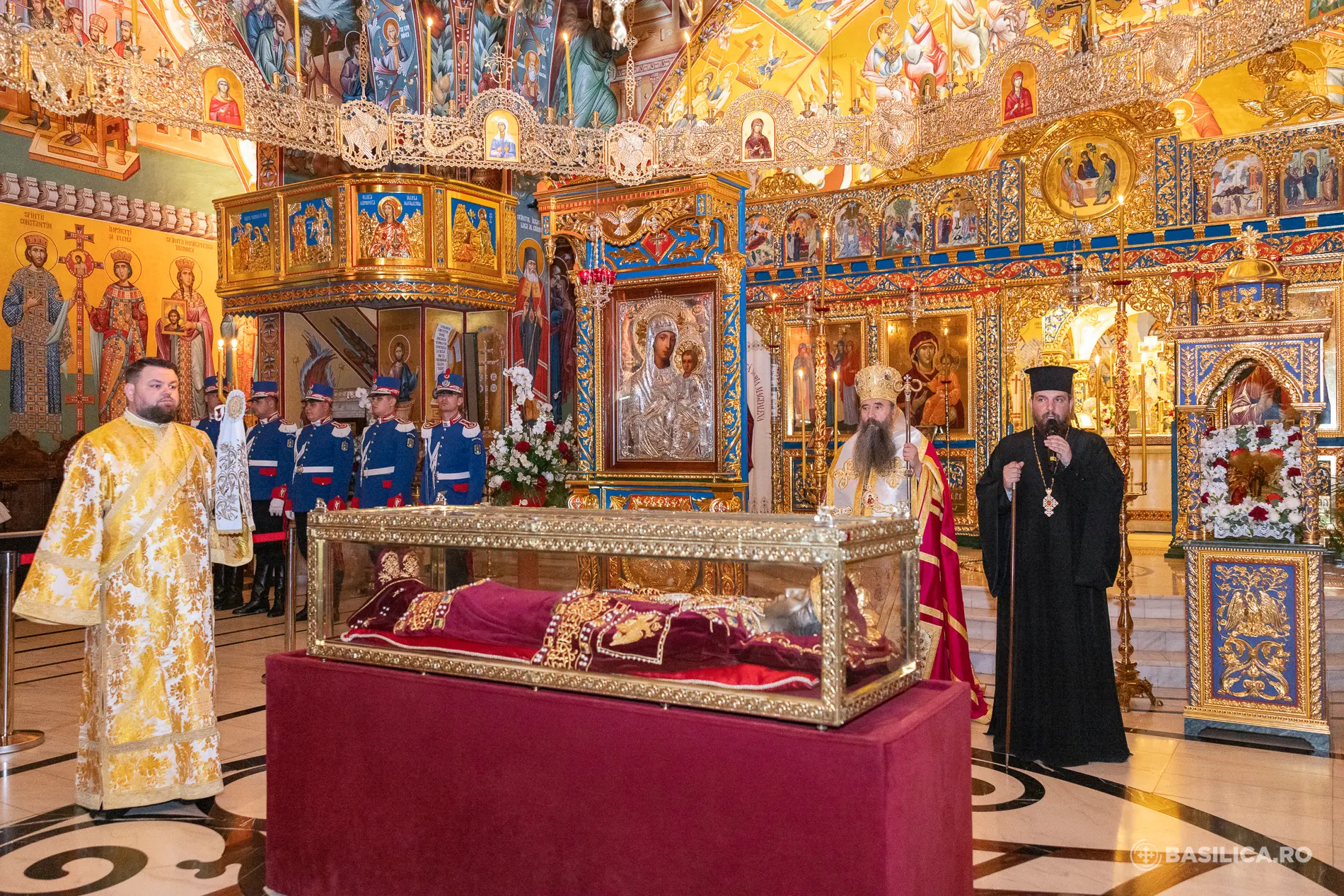 La sosirea în țară, miercuri, 30 aprilie, sfintele moaște au poposit și la Catedrala Patriarhală din Capitală, ocrotită de Sfinții Împărați Constantin și Elena, unde au fost întâmpinate de Părintele Patriarh Daniel.