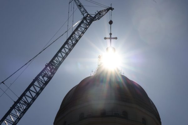 A fost montată crucea pe turla mare a Catedralei Naționale: Un moment ingineresc de top, sublimat de slujba de sfințire