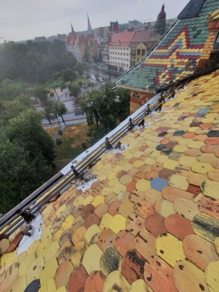 Lucrările au constat în restaurarea vazoanelor degradate, în atelier sau la fața locului, după caz, înlocuirea cârligelor degradate cu cârlige noi, refăcute după modelul original sau curățarea cârligelor, care nu au necesitat înlocuirea; înlocuirea și reparațiile la sorturi și glafuri din tablă de cupru, înlocuirea jgheabului degradat, care nu a mai putut fi îndreptat sau îndreptarea, curățarea și cositorirea pentru etanșeitate a jgheaburilor care au putut fi salvate, confecționarea de jgheaburi și burlane lipsă, după modelul existent pe catedrală, respectiv lucrări de reparații, curățare și cositorire a burlanelor degradate.
