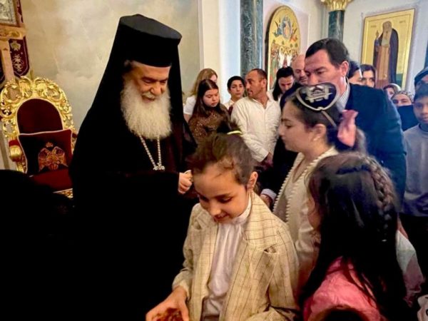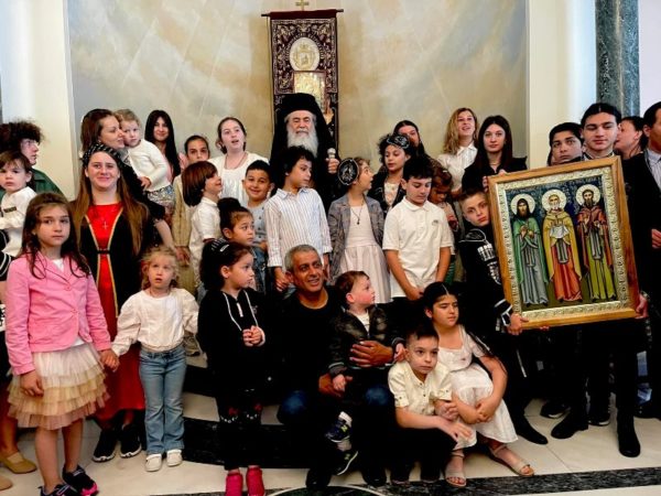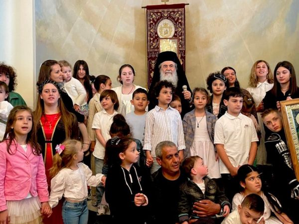 His Beatitude gave them souvenirs/blessings from Jerusalem.