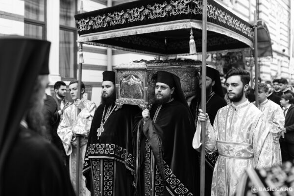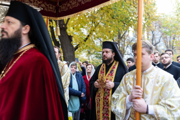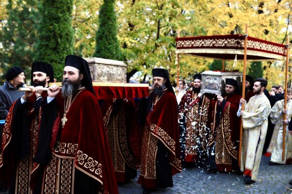 Moaștele Sfântului Ierarh Nectarie și ale Sfântului Efrem cel Nou au fost depuse în baldachinul din incinta Mănăstirii bucureștene Radu-Vodă, după ce mai întâi au fost purtate în procesiune.