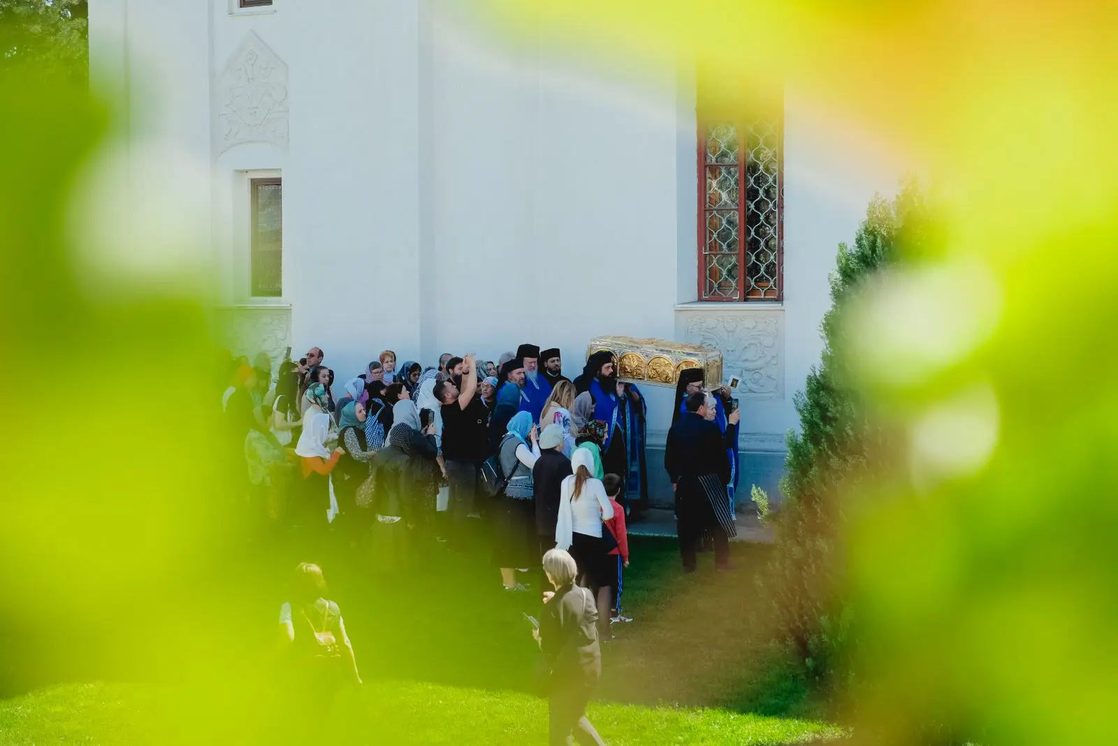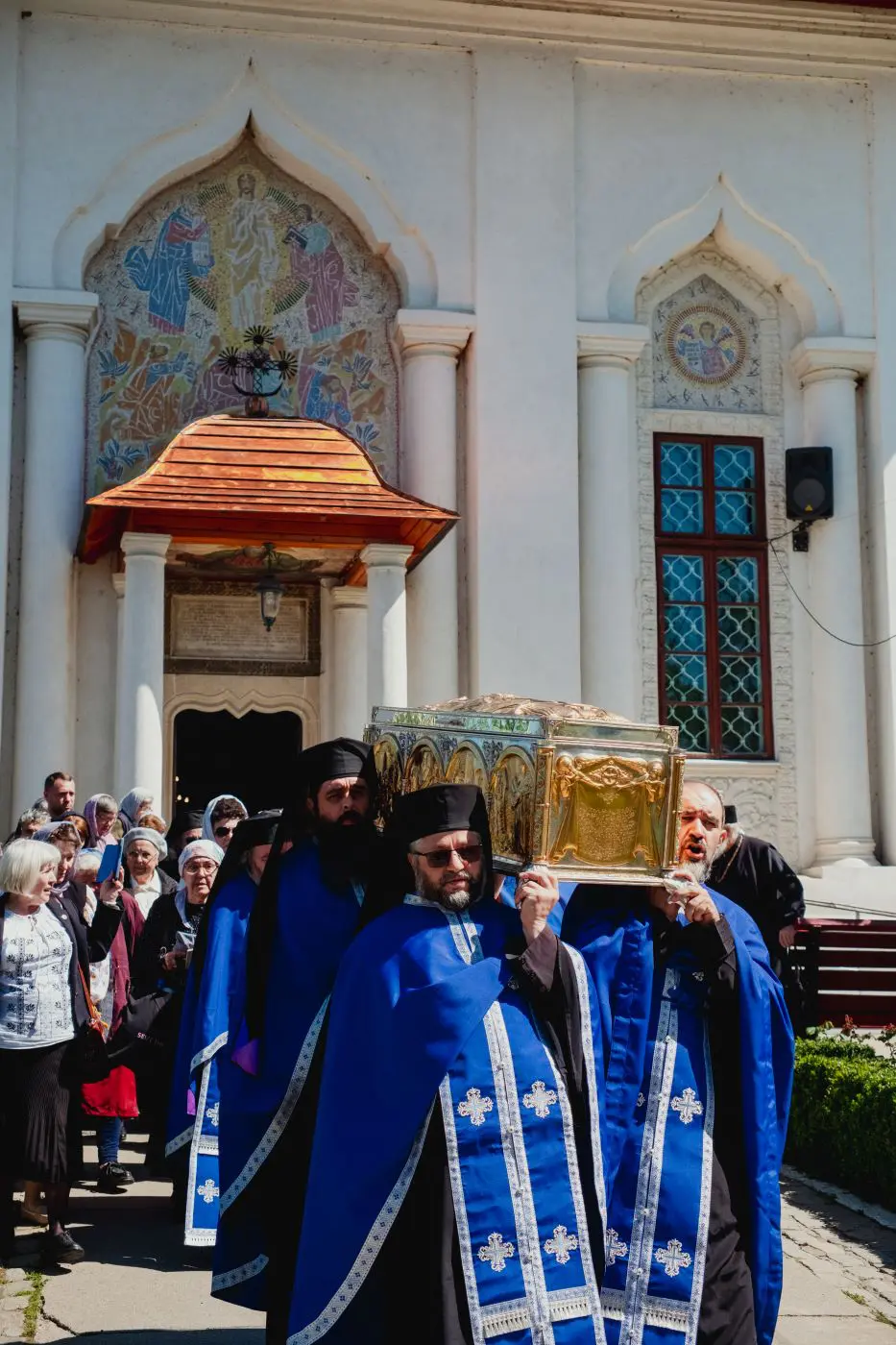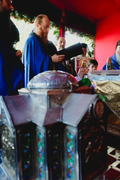 Moaștele sfântului au fost scoase în curtea sfântului așezământ miercuri, la ora 14:00, și așezate într-un baldachin, pentru a fi cinstite de credincioși.