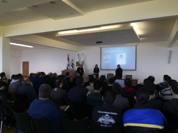 Under the High Patronage of His Beatitude Patriarch John X of Antioch and All the East, a lecture titled “Artificial Intelligence and Theology” was presented at the Saint John of Damascus Institute of Theology at the University of Balamand on Tuesday, April 16, 2019 and on Thursday, April 18, 2019. The lecture was jointly presented by Professor Aleksandar Petrovic from the University of Belgrade, Serbia and Professor Aleksandra P. Stevanovic from the University of Kragujevac, Serbia. The lecturers spoke about AI (Artificial Intelligence) around the globe. They discussed its development, its future impact in the world and its use in different fields. They highlighted the extent of interaction between man and robots, which started to look and act more human, i.e. Sophia (robot). Eventually, the lecturers stressed that technology is Fallen Theology that recreates the world but only in form.