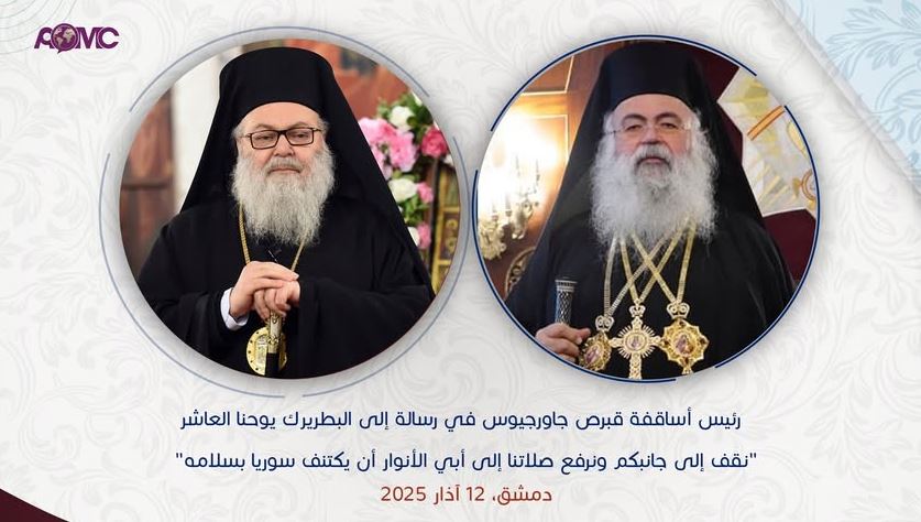 The Greek Orthodox Patriarch of Antioch and All the East, John X, received a letter of solidarity from Archbishop George of Cyprus. In his letter, His Beatitude expressed the Cypriot Church’s support for the people of the Church of Antioch in the event of what happened on the Syrian coast. He affirmed that the Church of Cyprus joins prayers with the Church of Antioch, invoking the Father of Lights to send his peace to Syria and his comfort to souls and hearts.